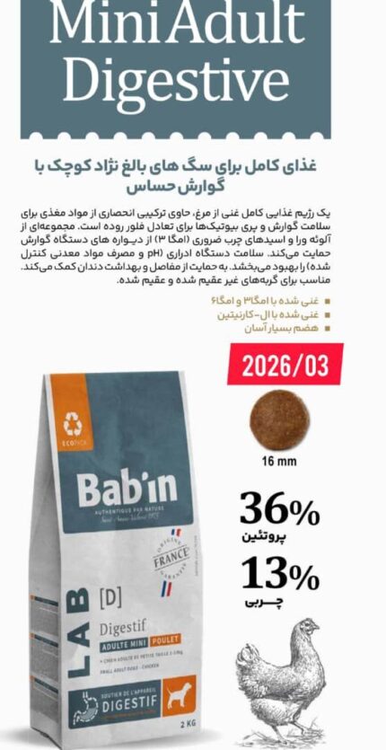 غذای خشک درمانی سگ گوارش حساس Digestive طعم بره برند Babin بابین 2 کیلویی