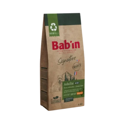 غذای خشک سگ بالغ بدون غلات mini adult برند Babin بابین طعم مرغ 6 کیلویی